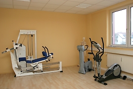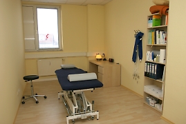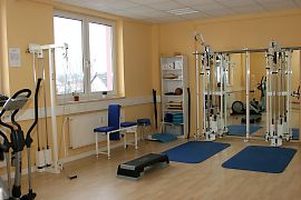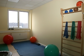feste Behandlungsräume, einen Trainingsraum, einen Gymnastikraum und