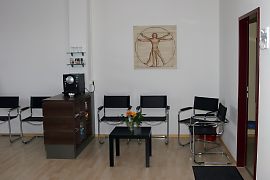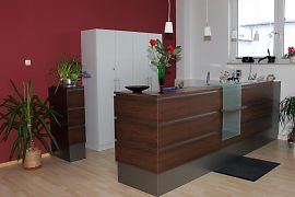 einen großzügigen Anmeldungs- und Wartebereich. Umkleidekabinen,